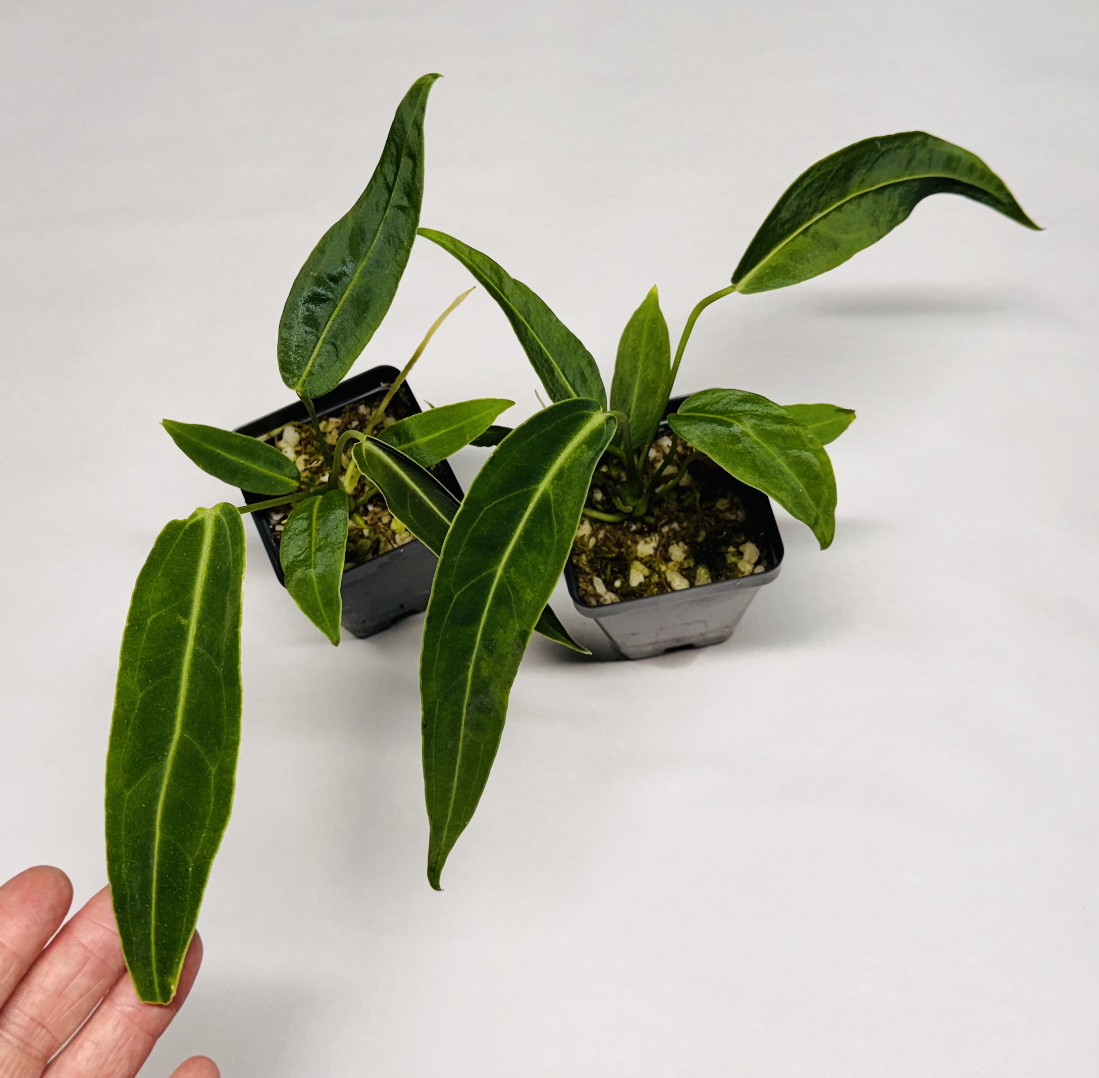 I love love love this plant. A. warocqueanum has been known to make collectors drop to their knees upon entering the shadehouse. This velvety Columbian beauty is so incredible! A well grown specimen can reach 4-6 ft long! I’ve only acheived 2 1/2 ft long myself. This a variable species.